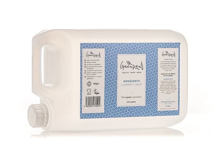 Greenscents Organic Laundry Liquid is made with certified organic soap nuts and shikakai pods for the most sensitive households. Non-biological and free from SLS, enzymes, optical brighteners and artificial fragrances (choose Nonscents for newborns and allergy sufferers), it’s perfect for baby clothes, cloth nappies and pet or children’s bedding. 100% biodegradable, cruelty-free and Soil Association certified, clean you can trust.