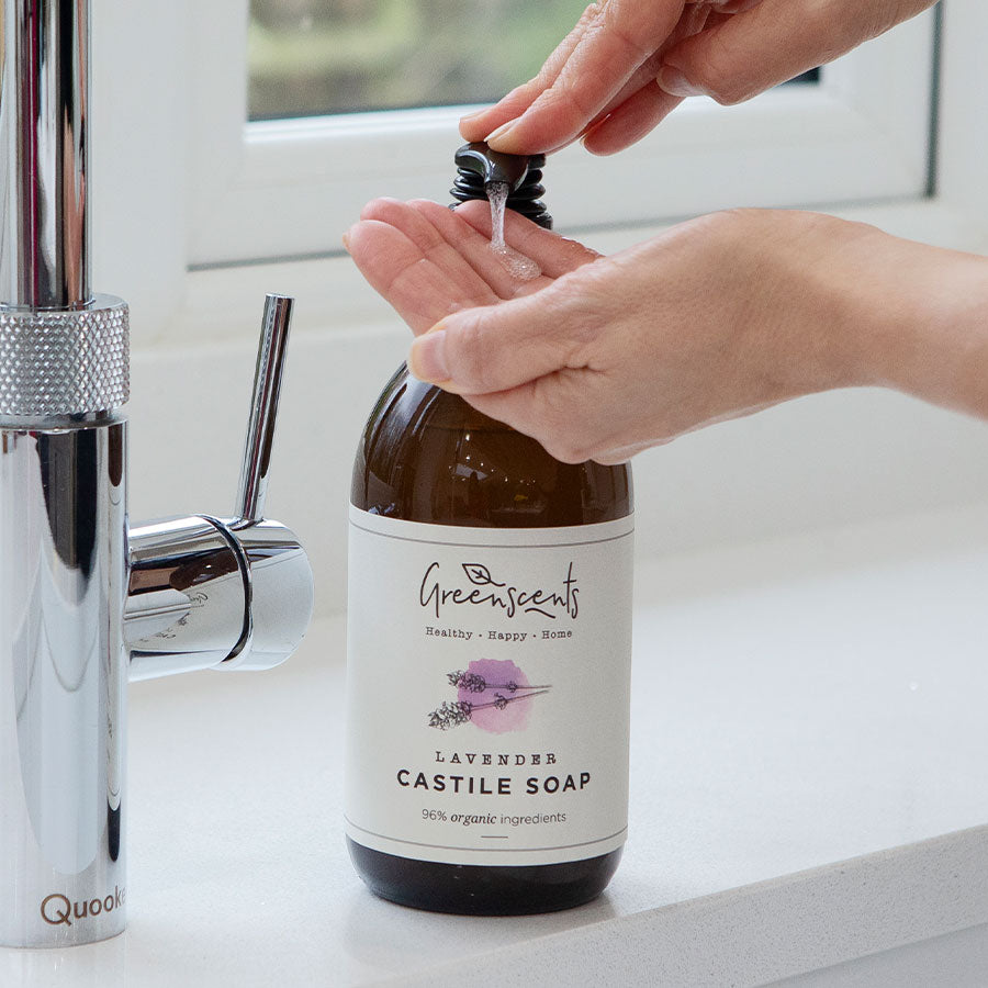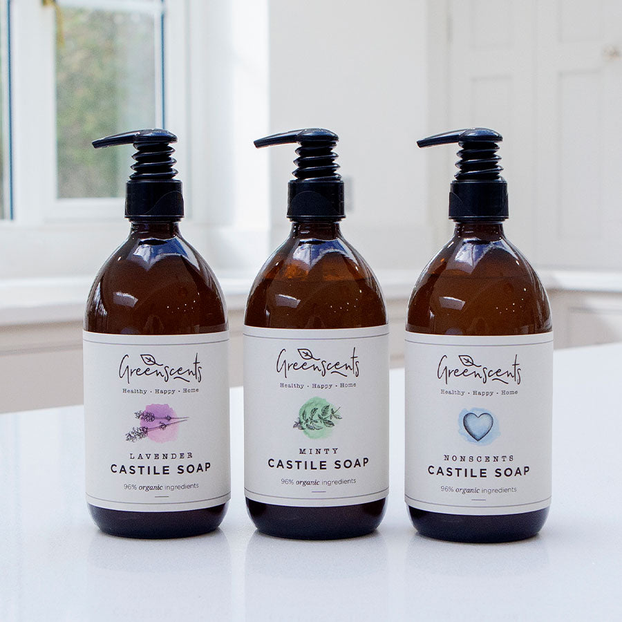 A few drops of Greenscents Castile Soap go a long way. This concentrated, multi-purpose formula is perfect for everyday cleaning and ideal for travel.