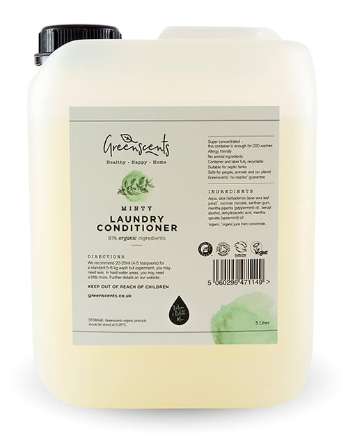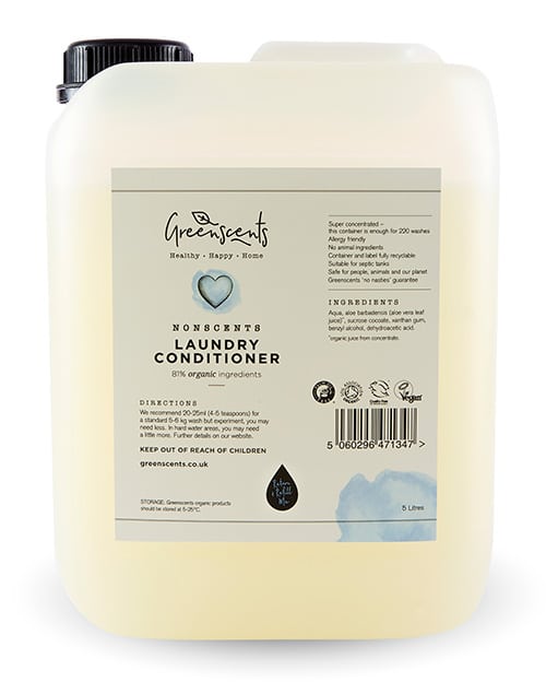 Greenscents Organic Laundry Conditioner is a creamy plant-based formula that softens and protects fabrics without irritating sensitive skin.