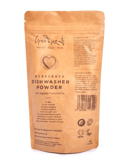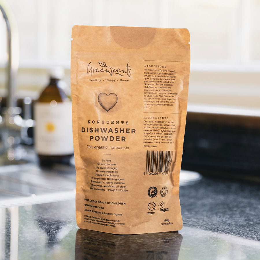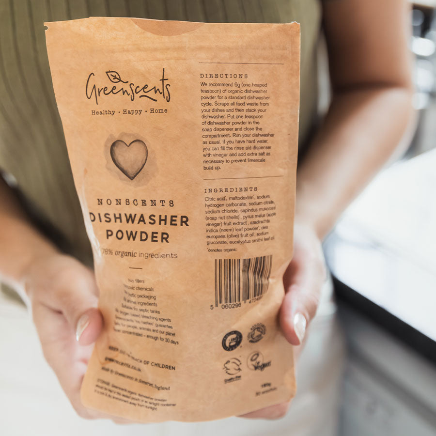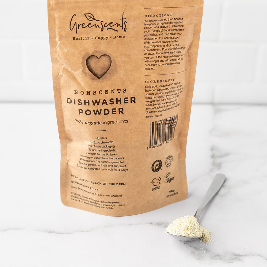 Greenscents Organic Dishwasher Powder is made with natural minerals and certified